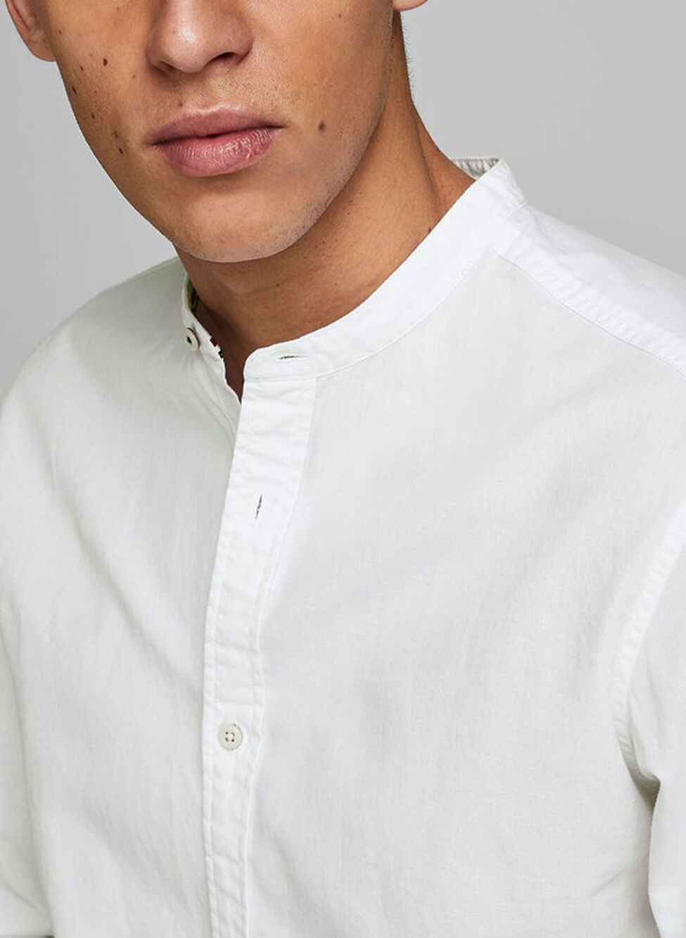 Camicia in misto lino con colletto alla coreana da uomo.