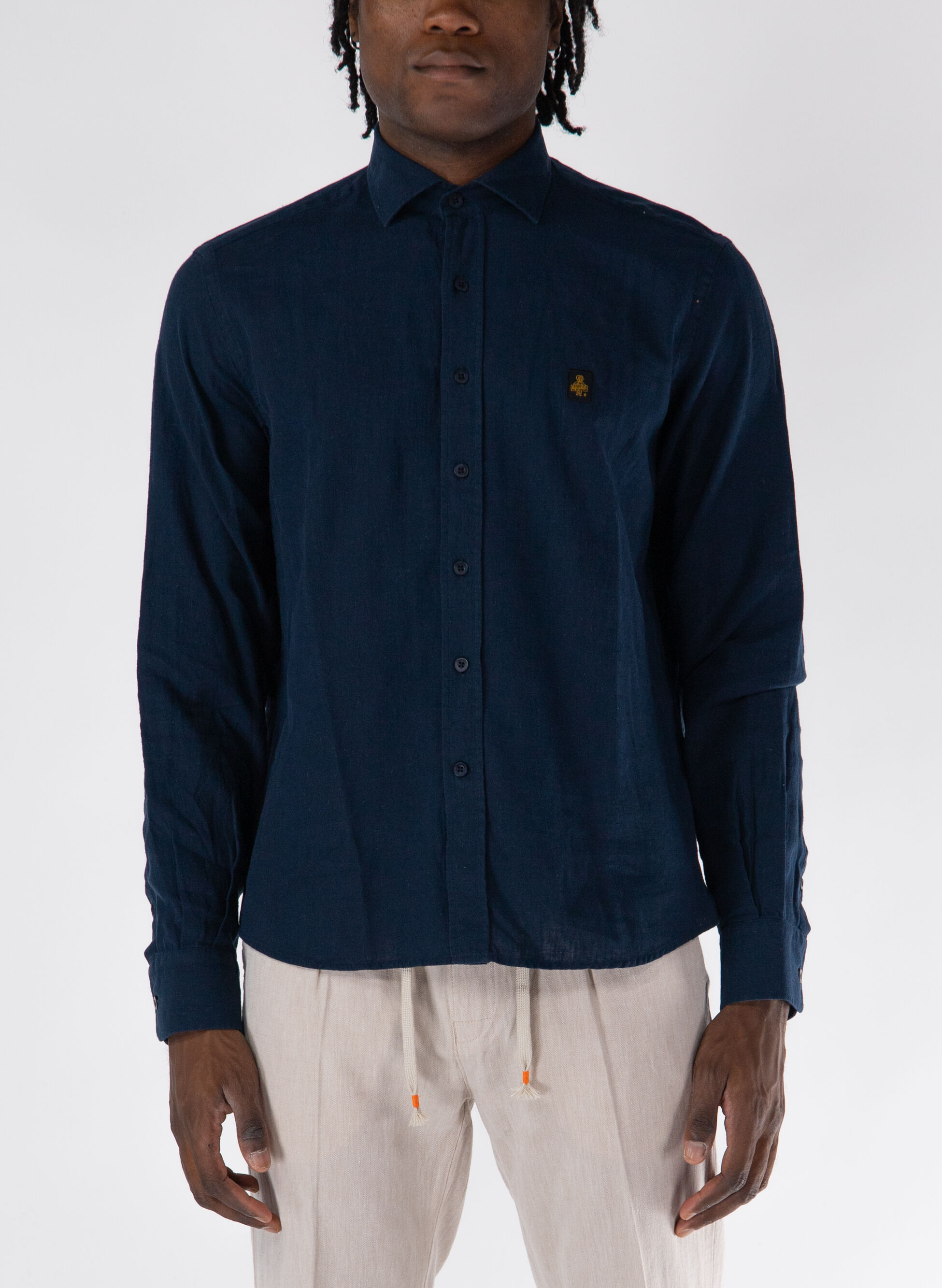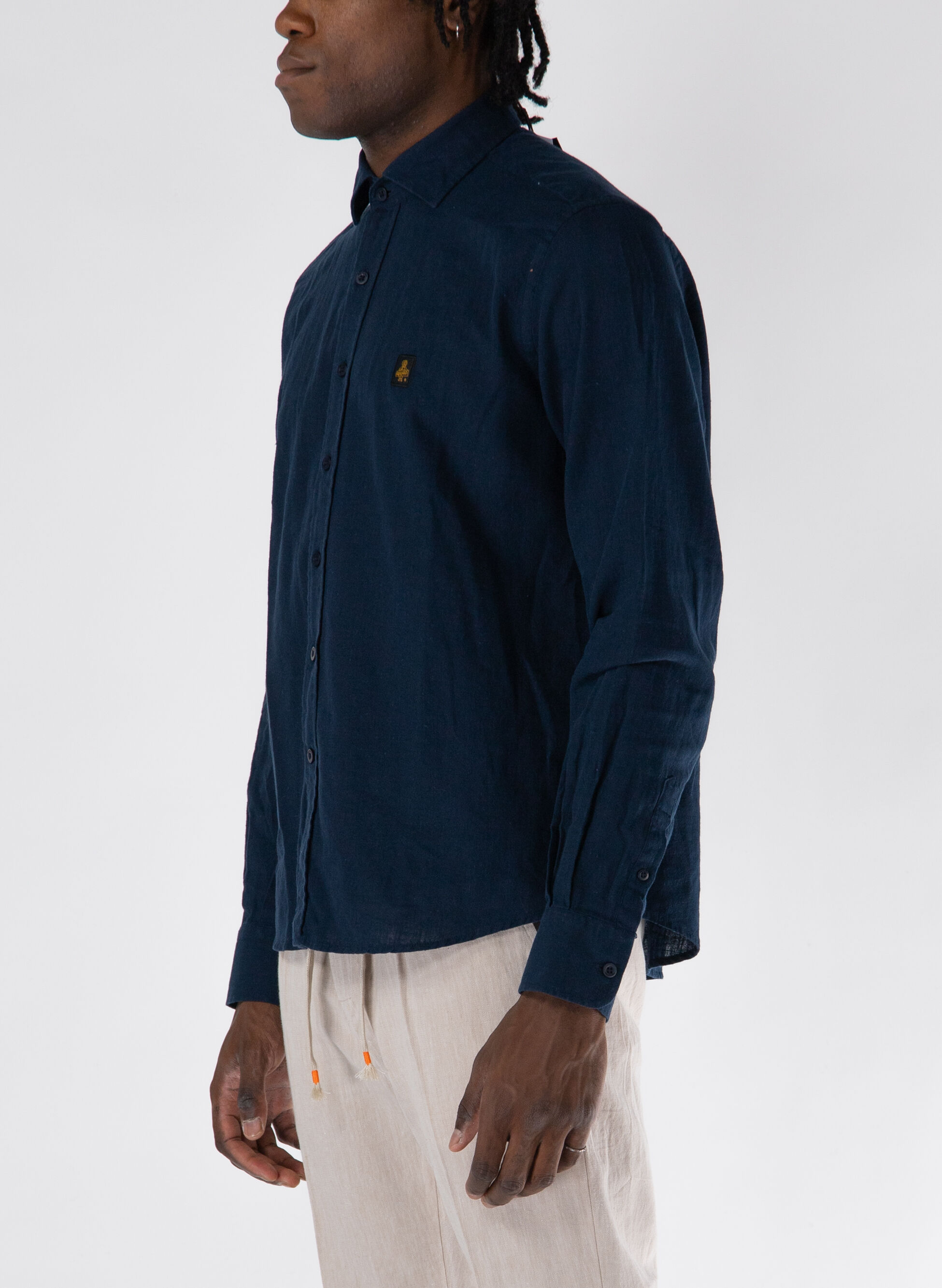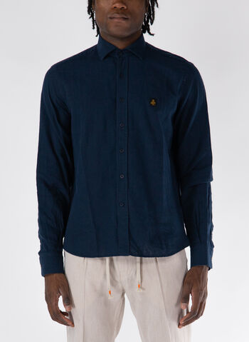 Camicia da uomo realizzata in lino a maniche lunghe con colletto classico e chiusura con bottoni.