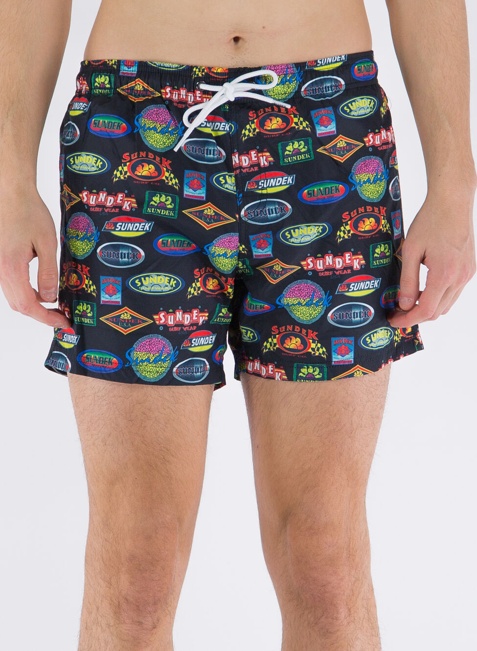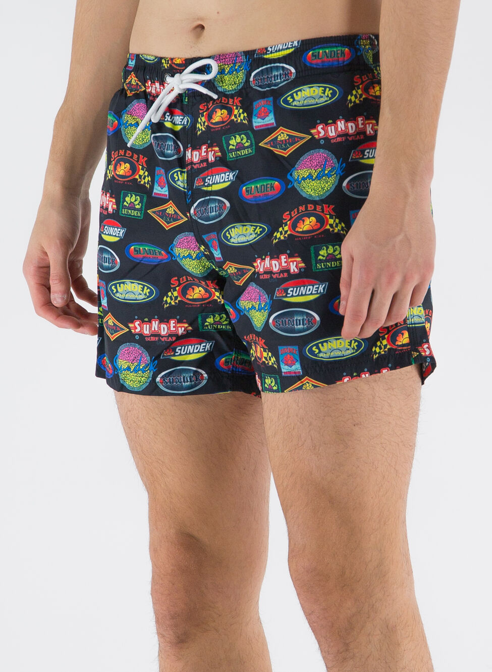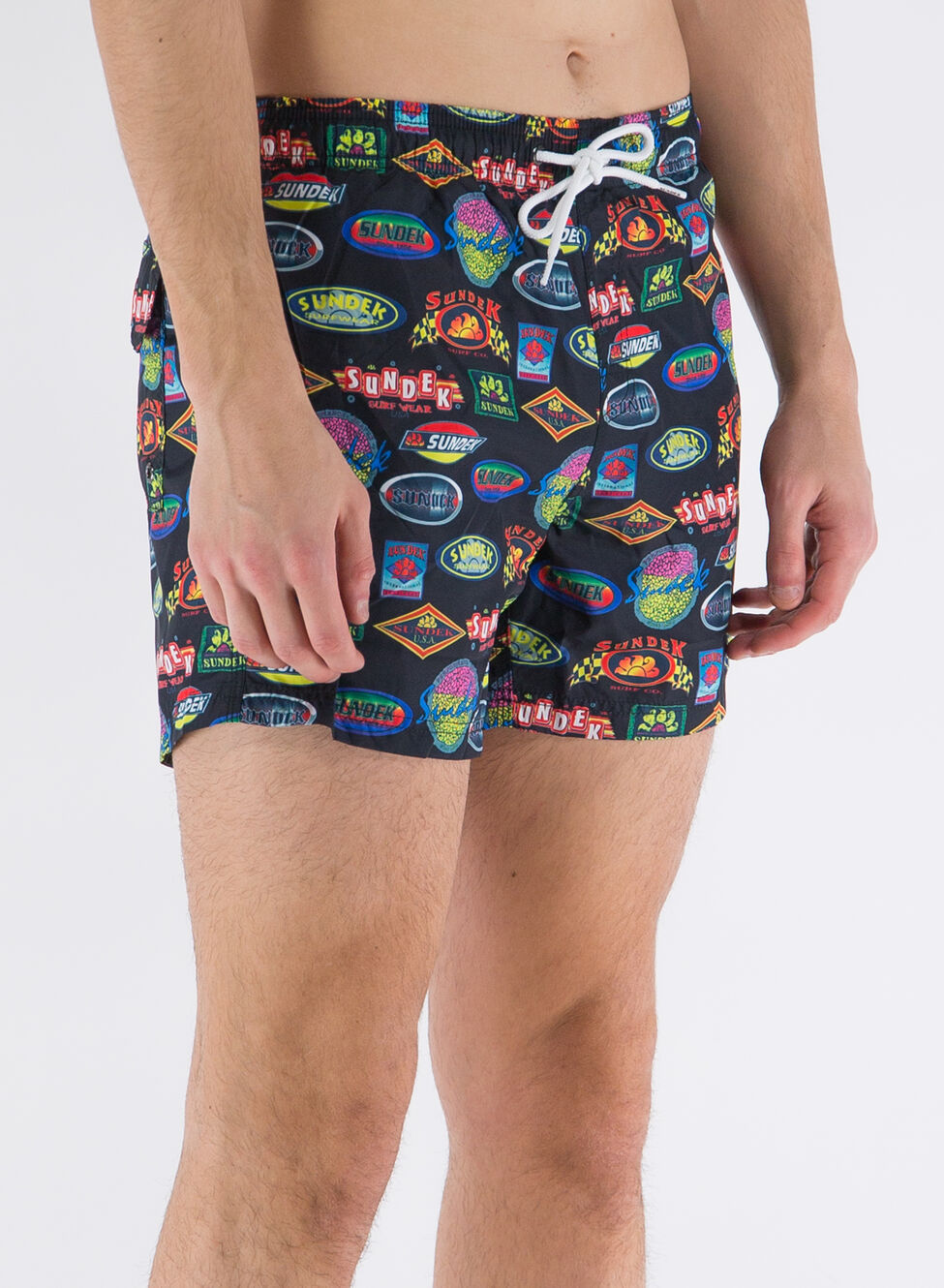 Boxer da mare Sundex realizzato in poliestere riciclato con vita elasticizzato e coulisse esterna per la regolazione.