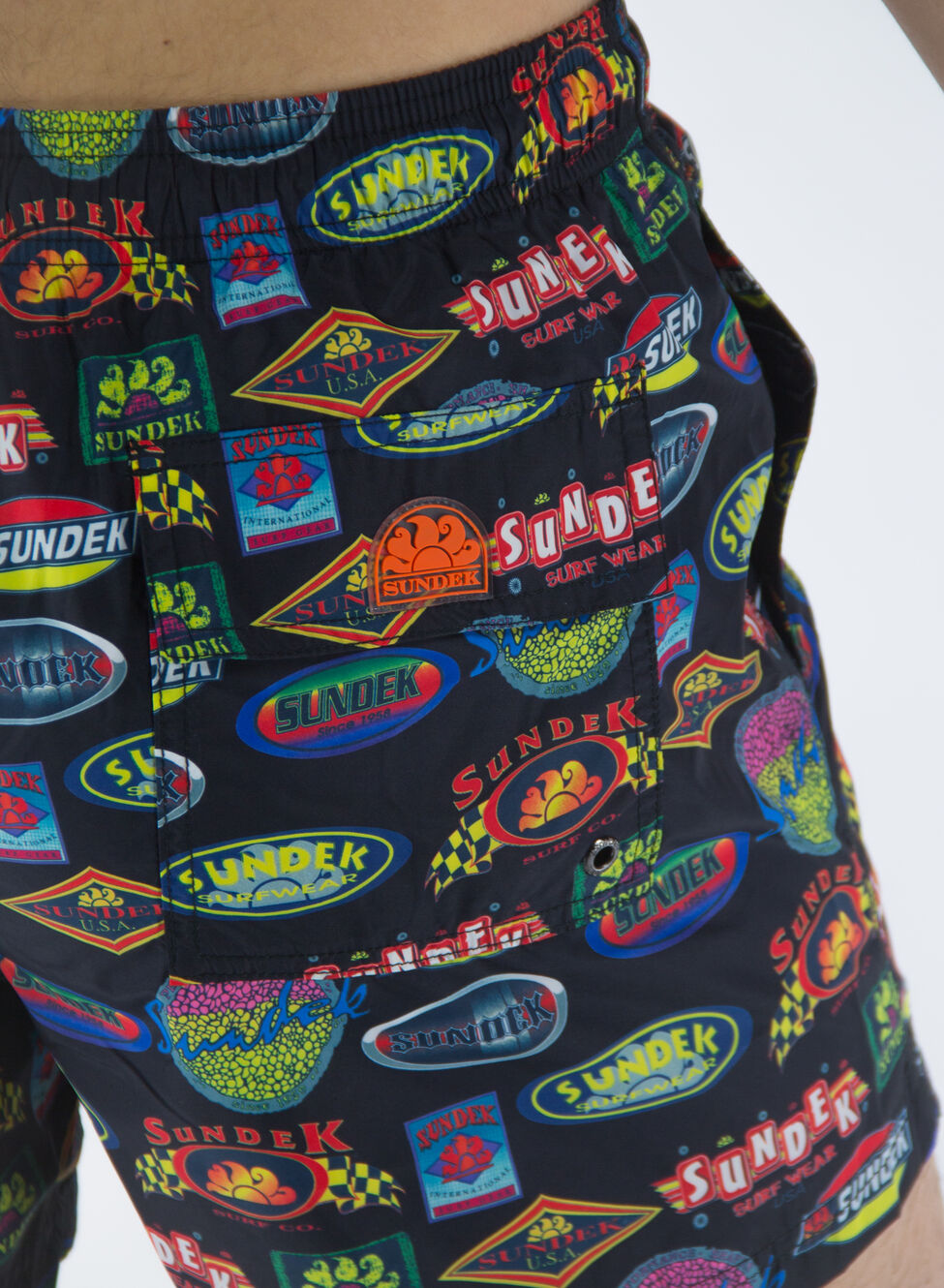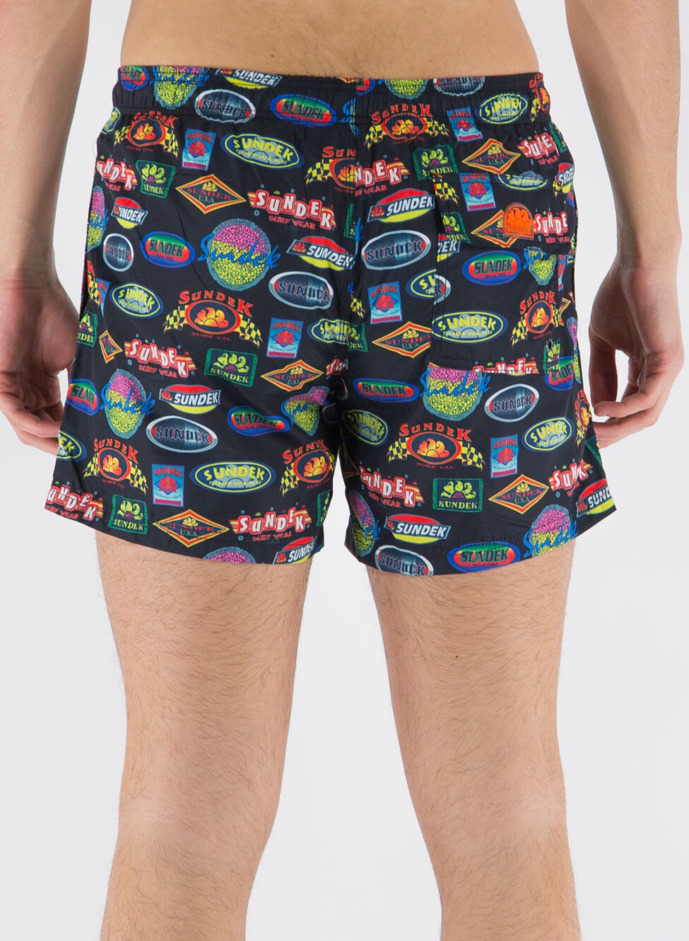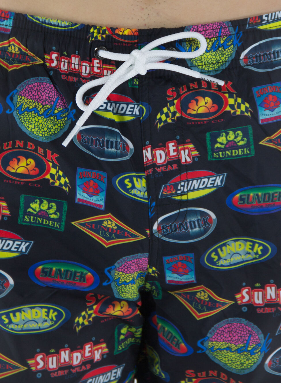 Boxer da mare Sundex realizzato in poliestere riciclato con vita elasticizzato e coulisse esterna per la regolazione.