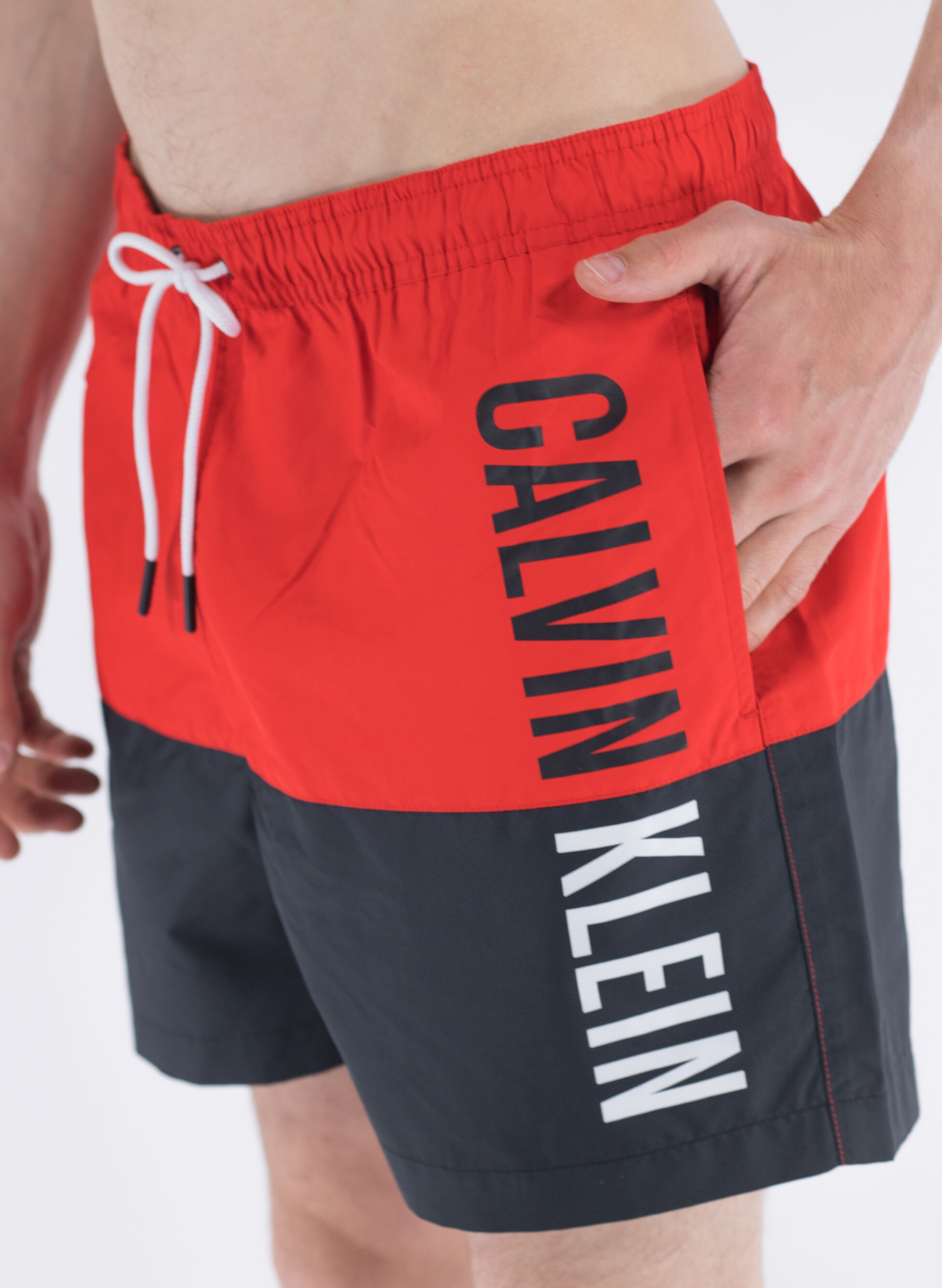 Costume Calvin Klein modello short con logo lettering oversize sulla fianco sinistro.