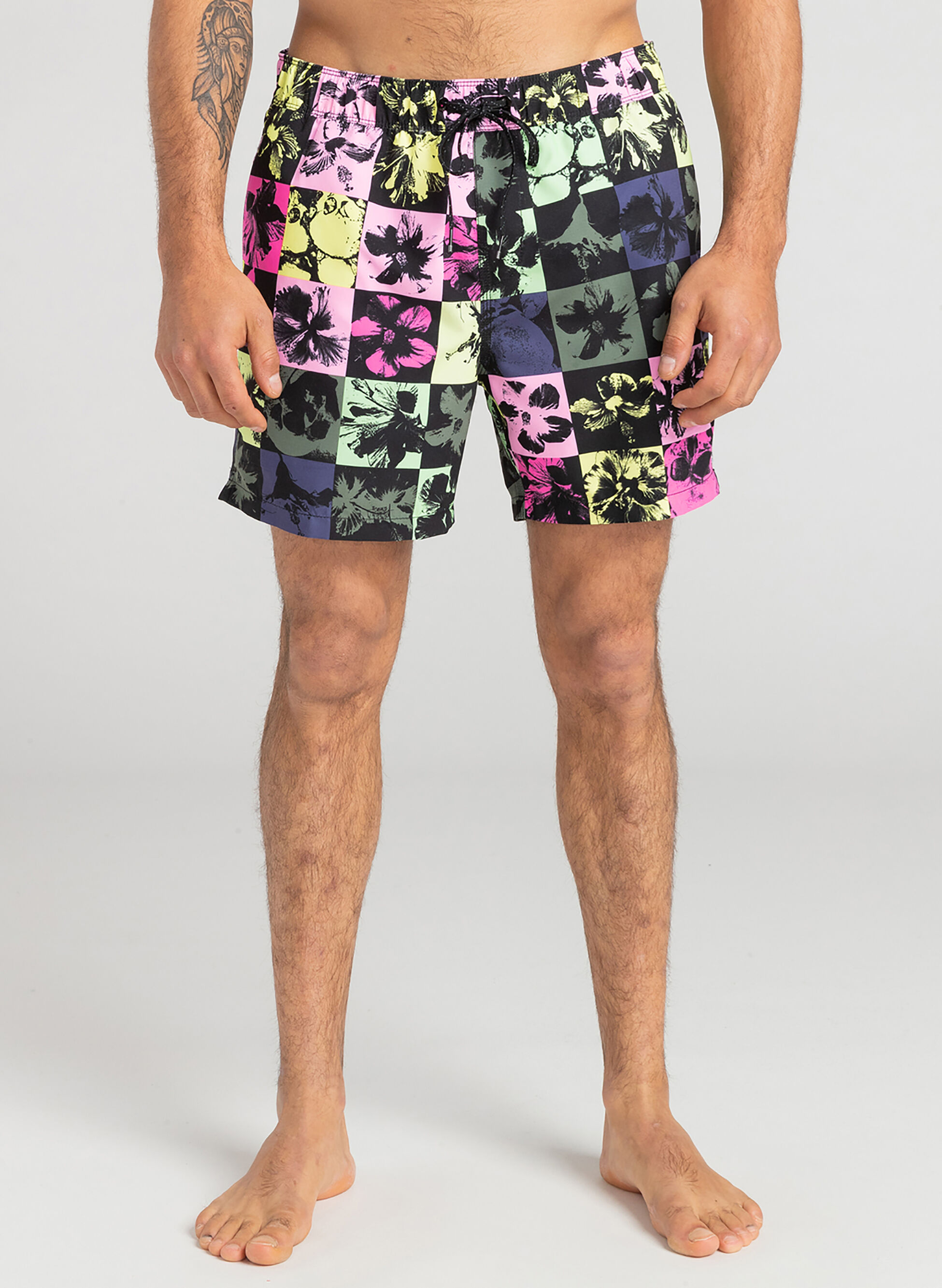 Stampa neon all over e mini logo badge davanti.