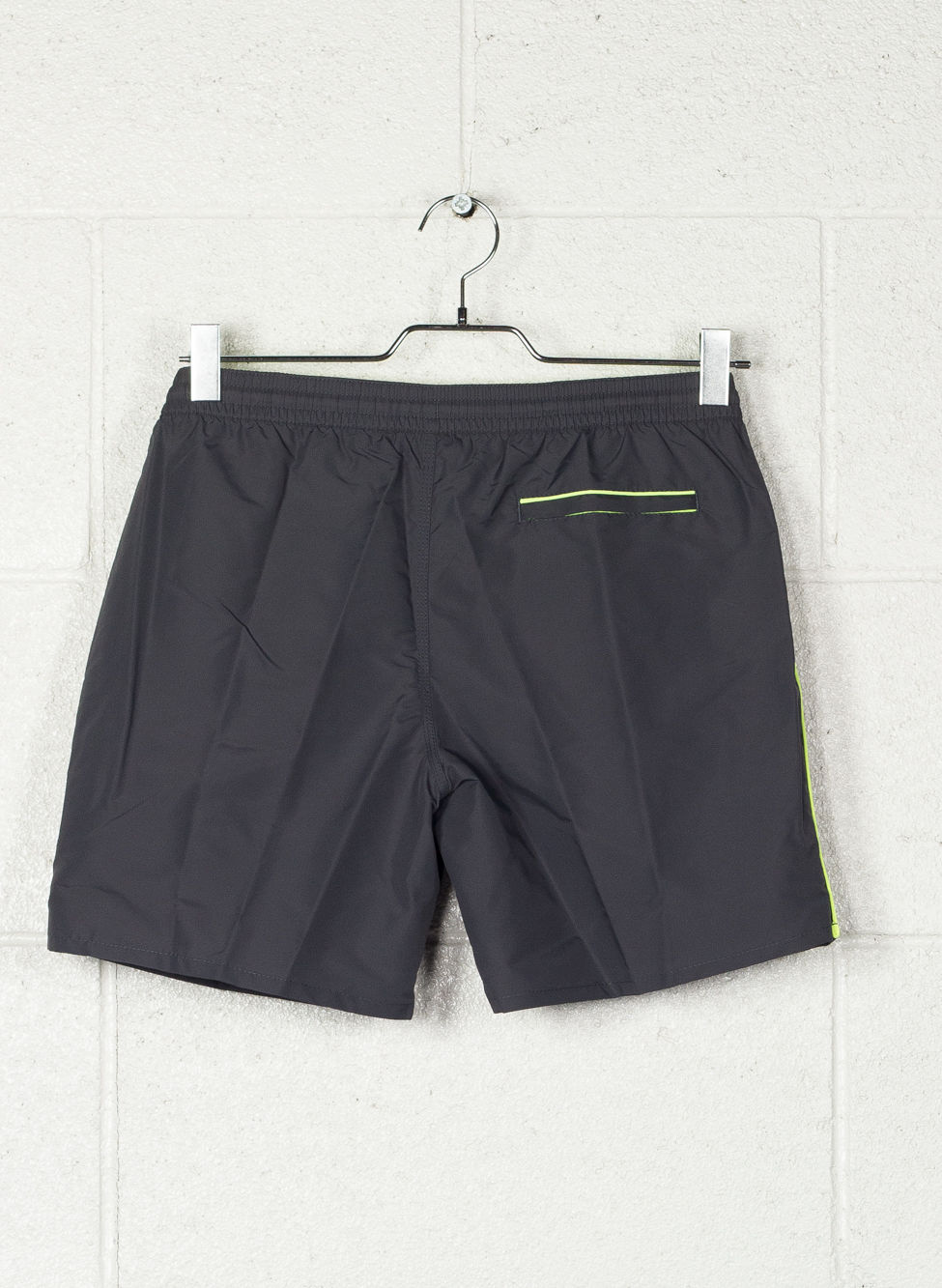 Pantaloncino corto a vita bassa in in Nylon. Taffeta a doppio strato con tripla cucitura che permette una maggiore resistenza del capo. Tasca posteriore con cerniera. Vita elasticata con coulisse.