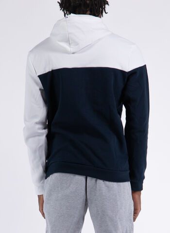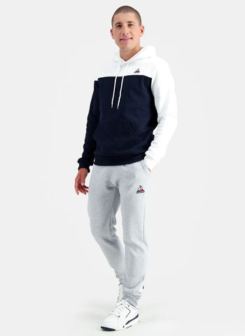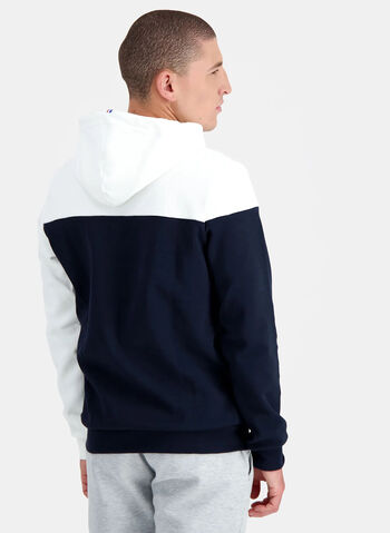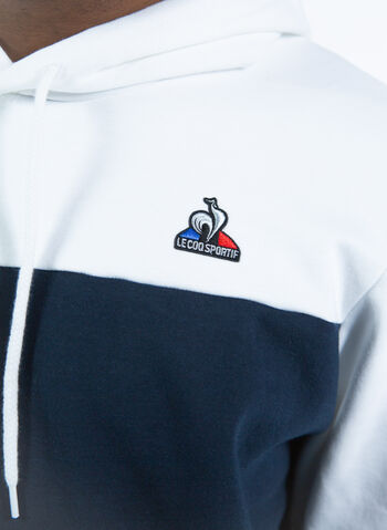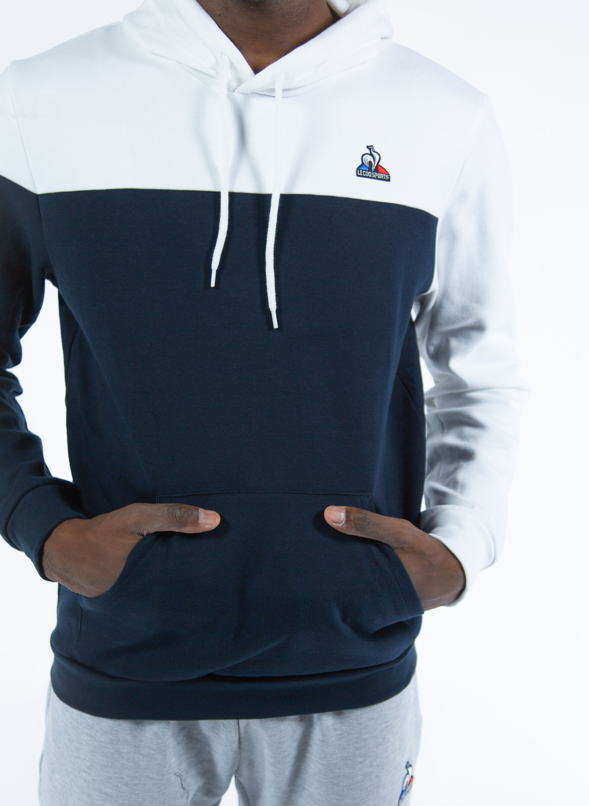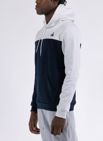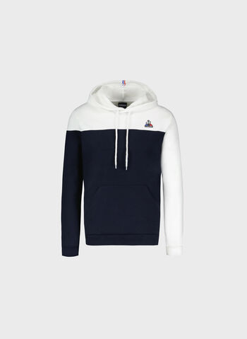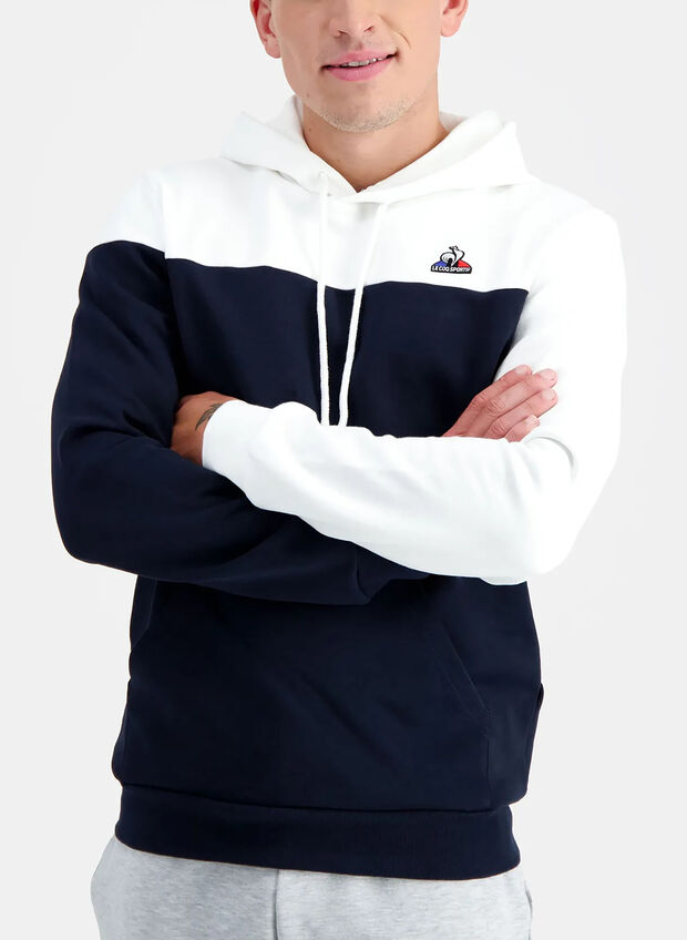 Felpa da uomo Le Coq Sportif modello realizzato in doppio tessuto di misto cotone con cappuccio e coulisse regolabile.
