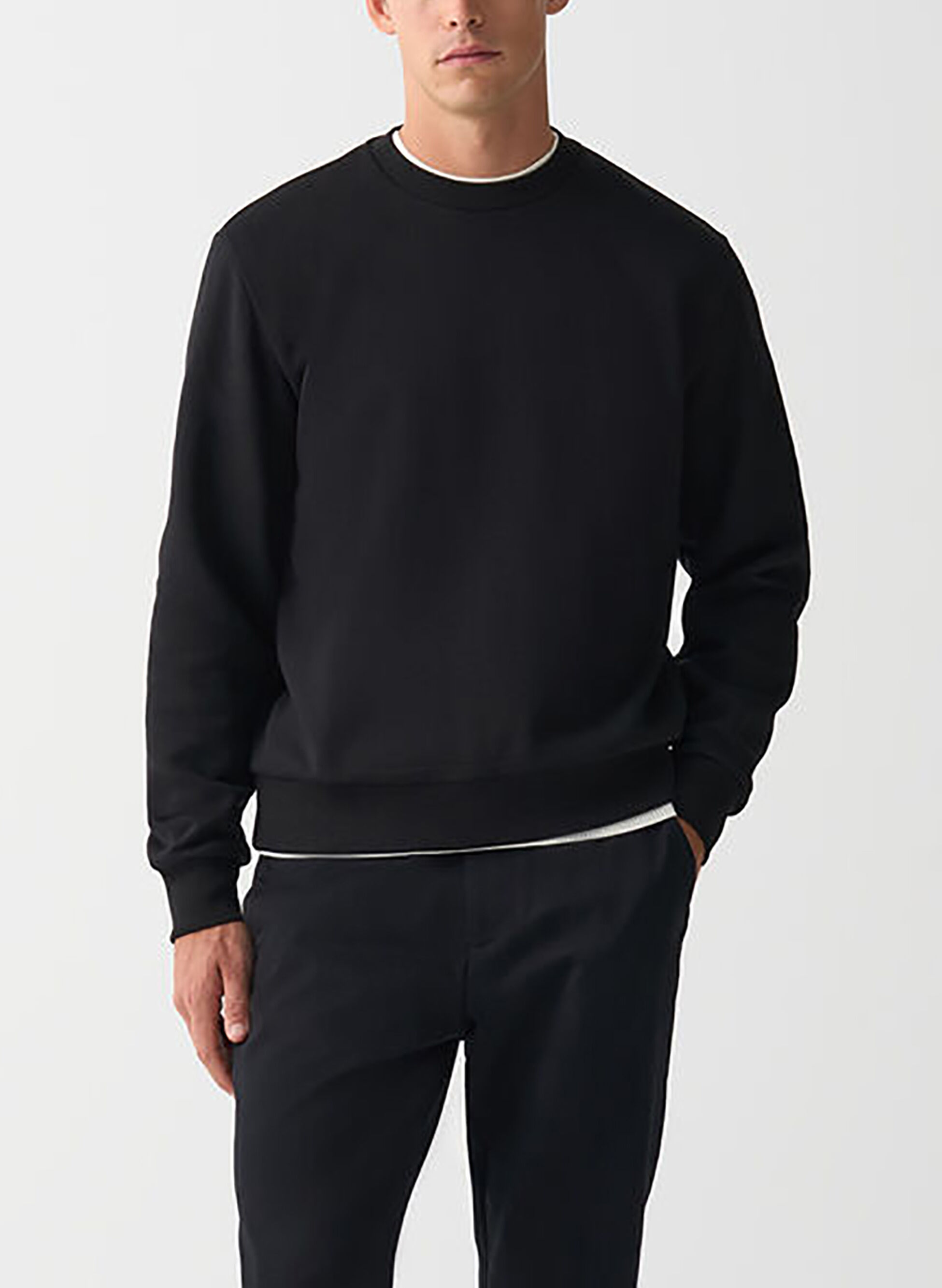 felpa girocollo essential con bordi a costina