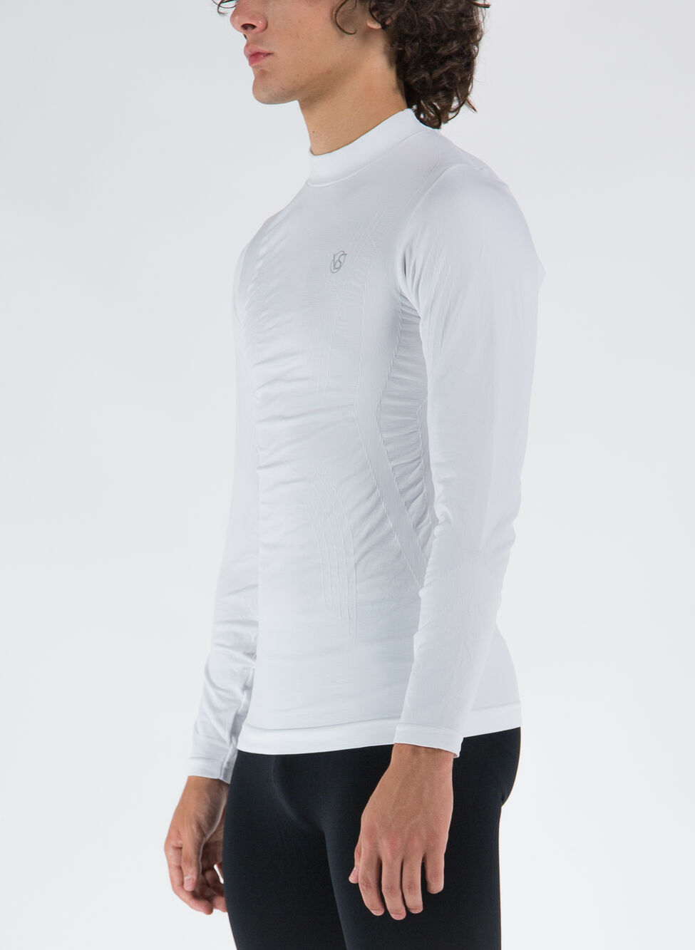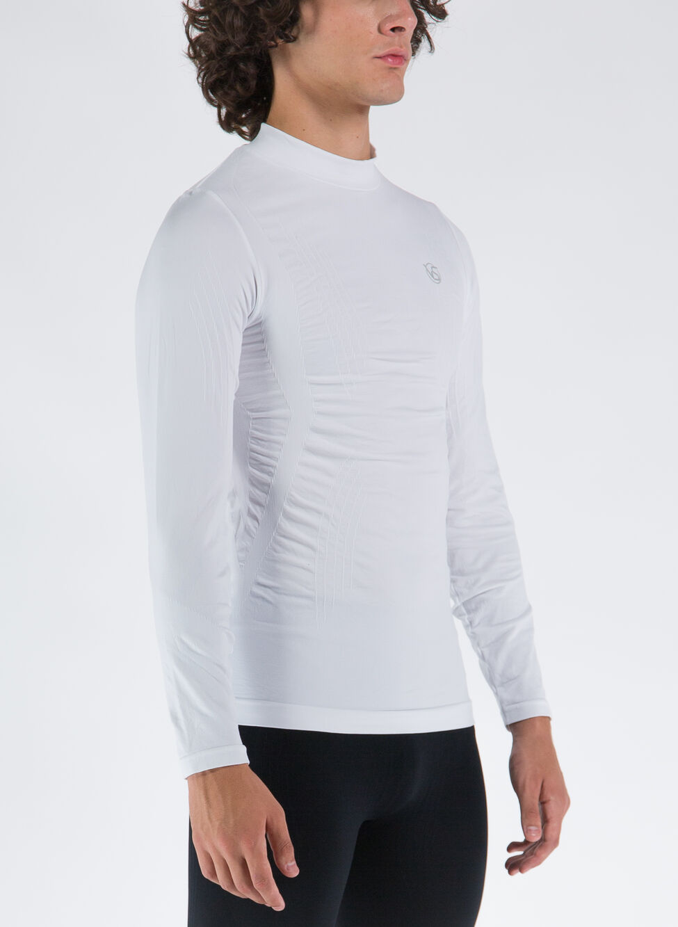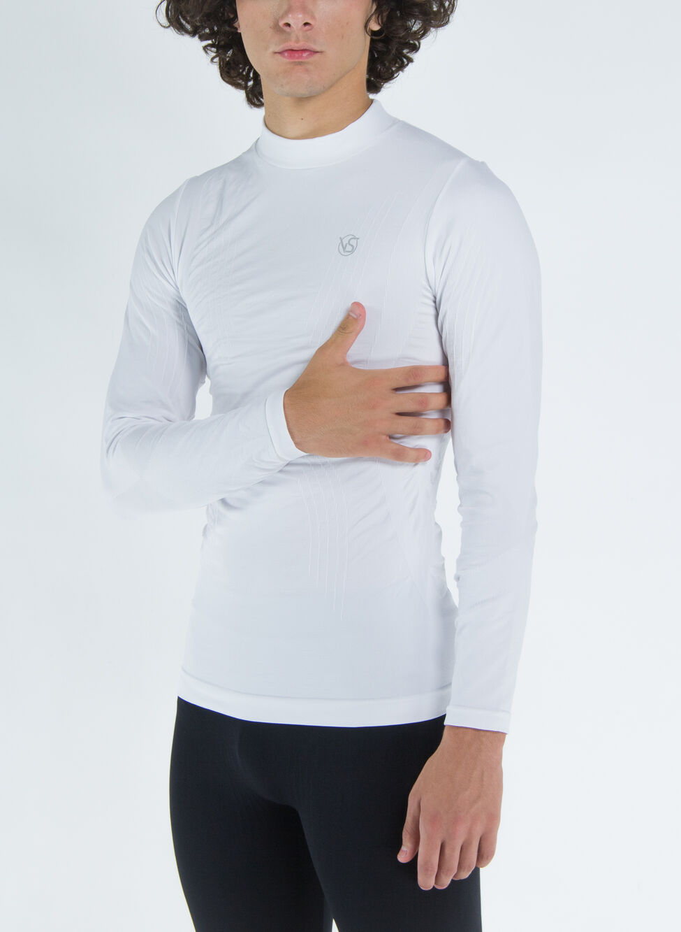Maglia tecnica intima da uomo con collo a lupetto e maniche lunghe.