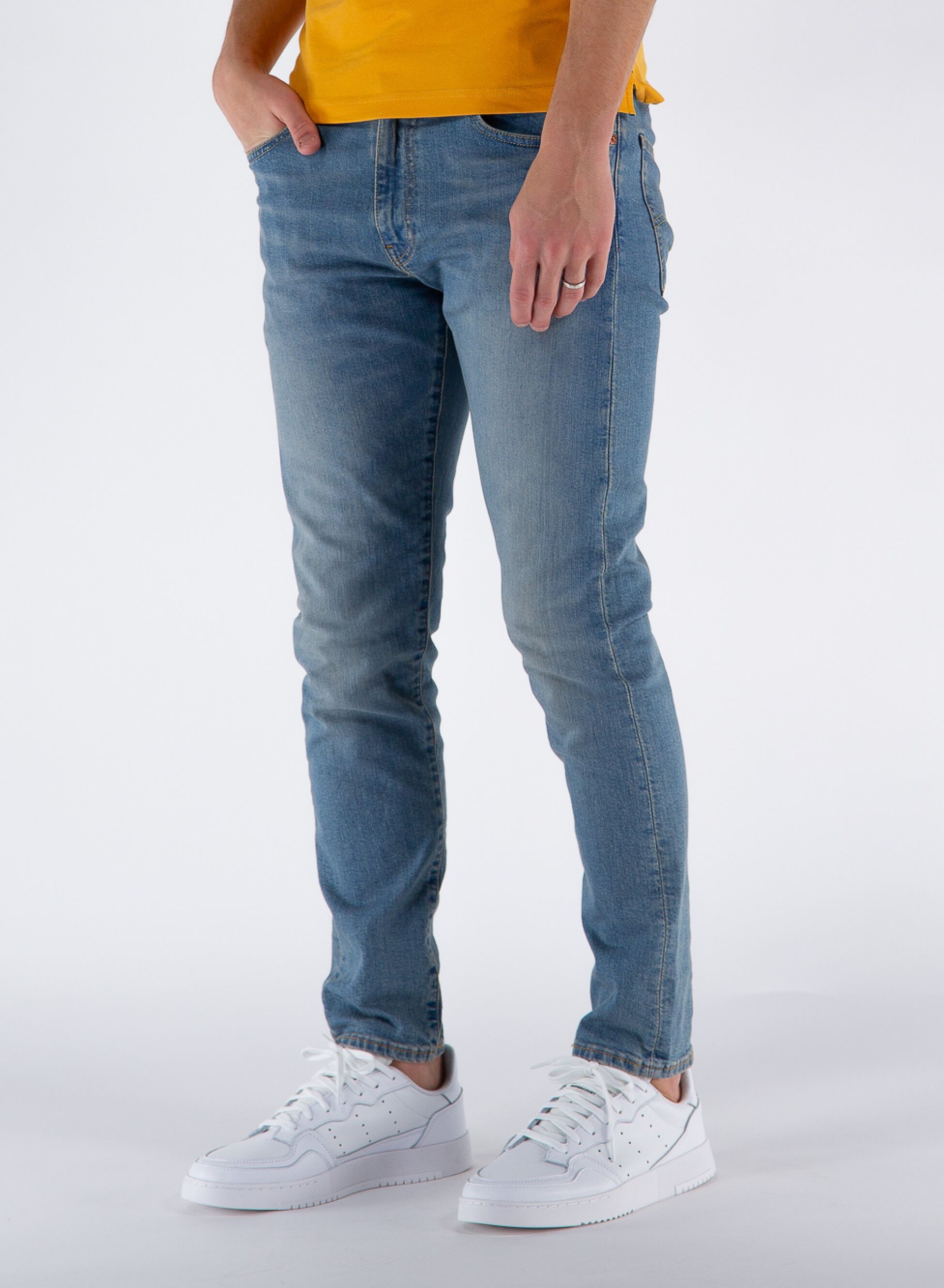 Jeans a vita bassa e 5 tasche da uomo.