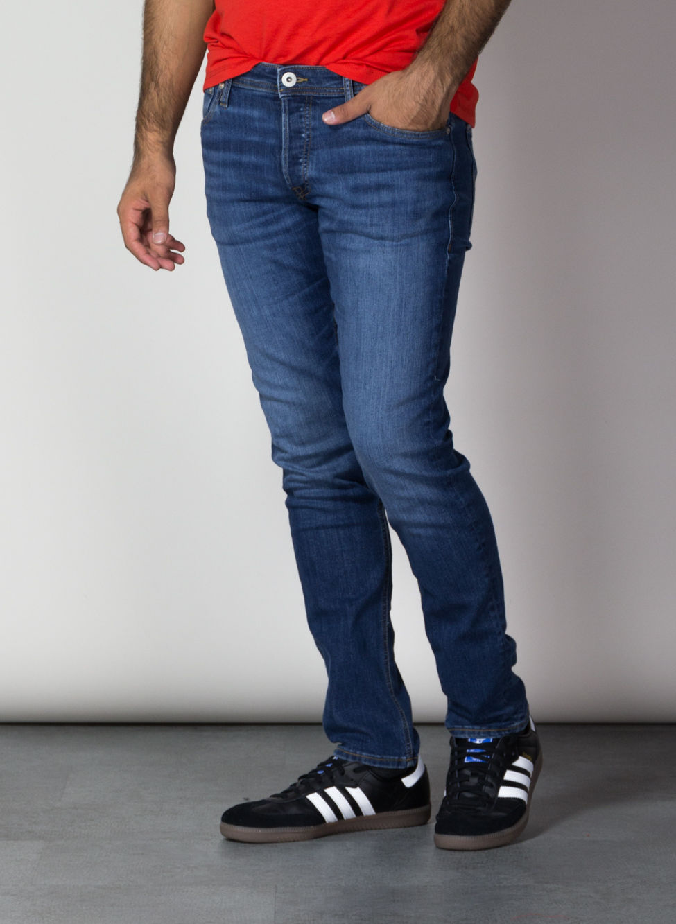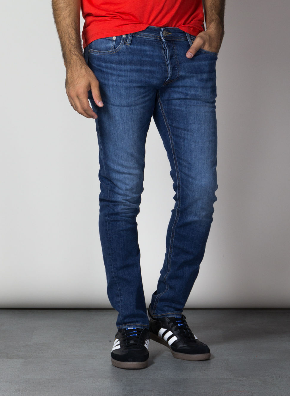 Gamba stretta e vita bassa.