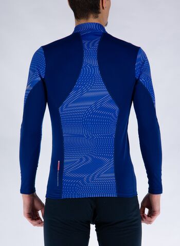 Collo rialzato con mezza zip e inserti traspiranti sui lati e sulle maniche.