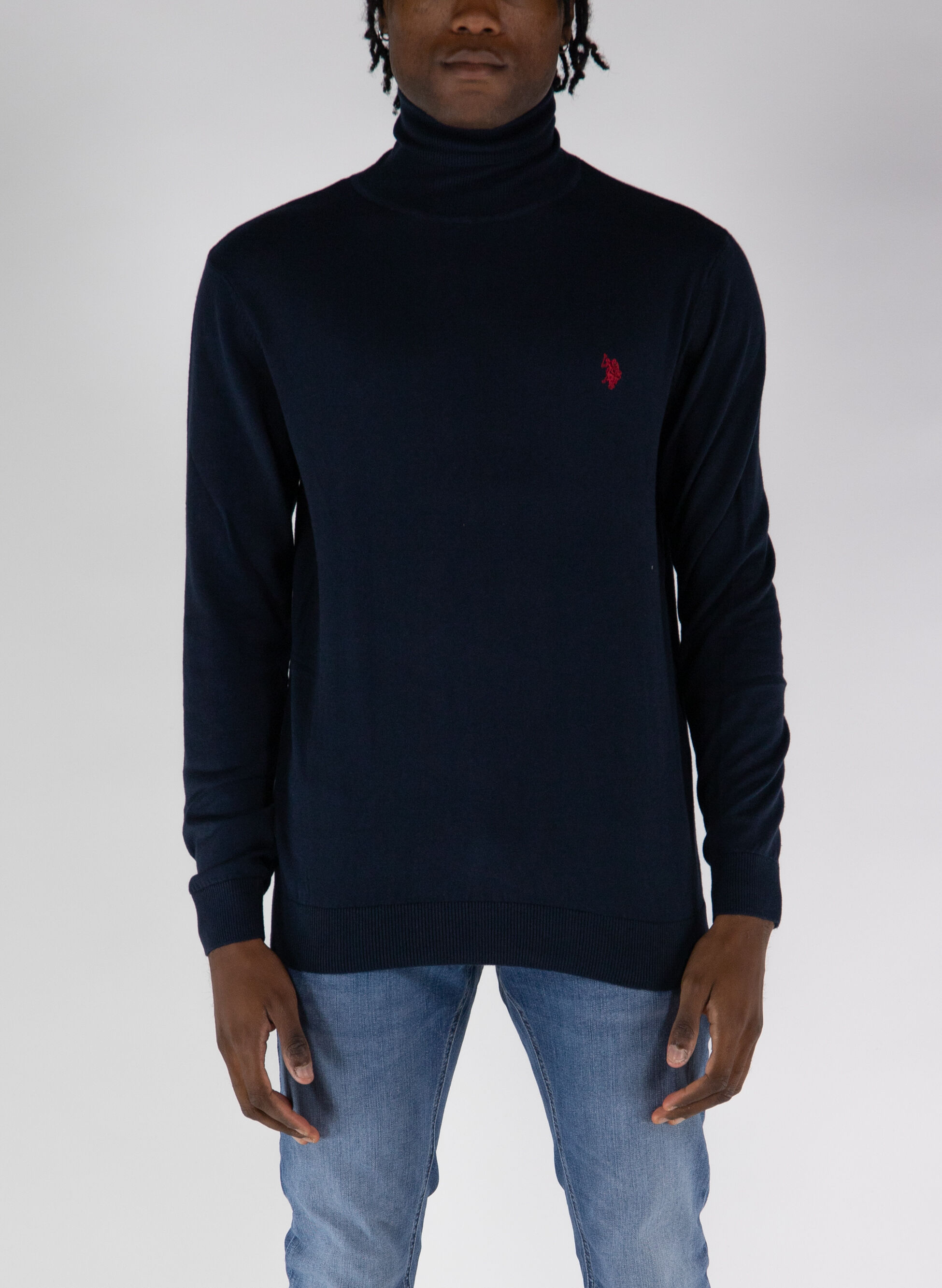 Maglione da uomo a collo alto leggero e morbido al tatto e logo ricamato sul petto.