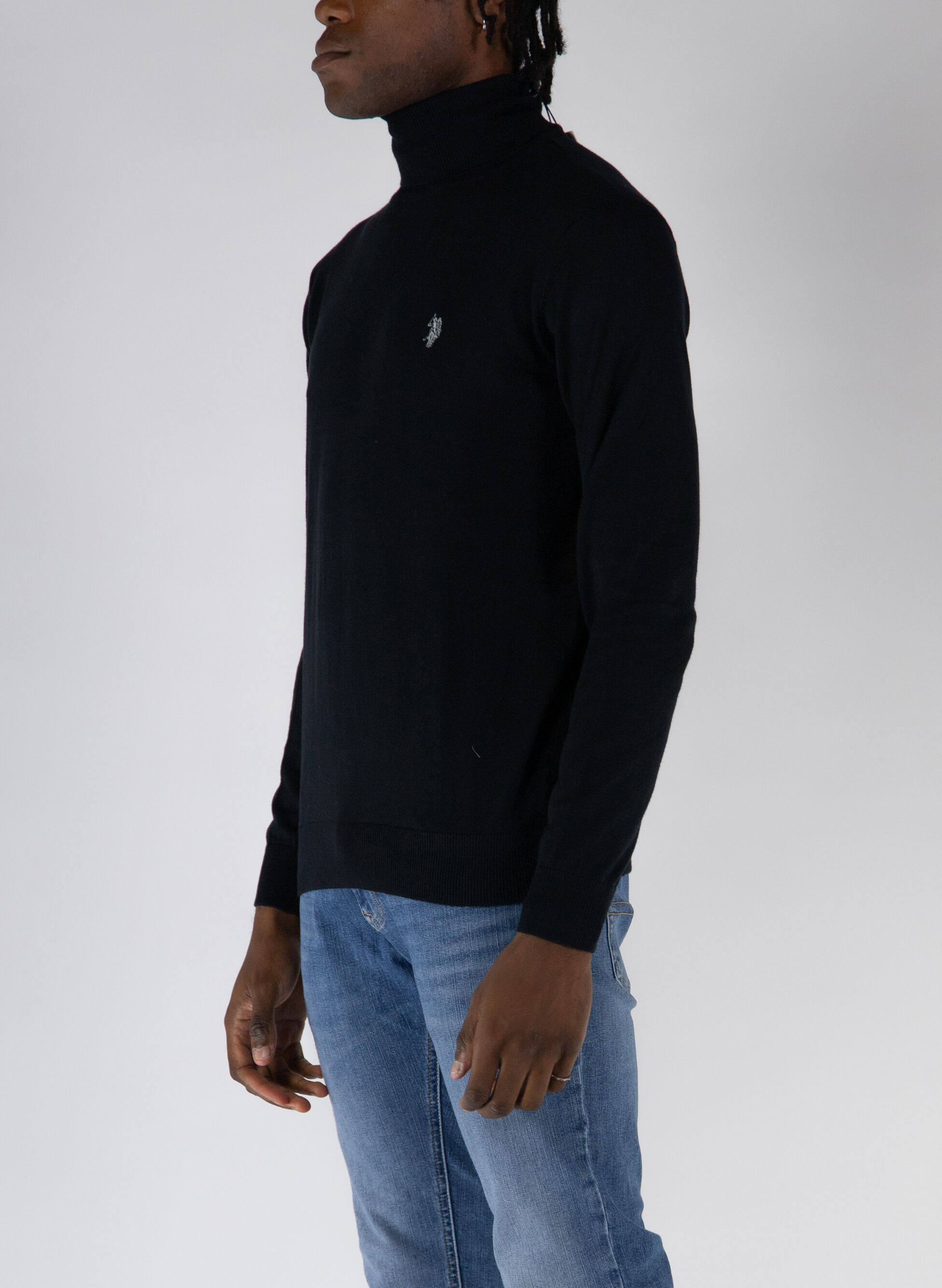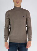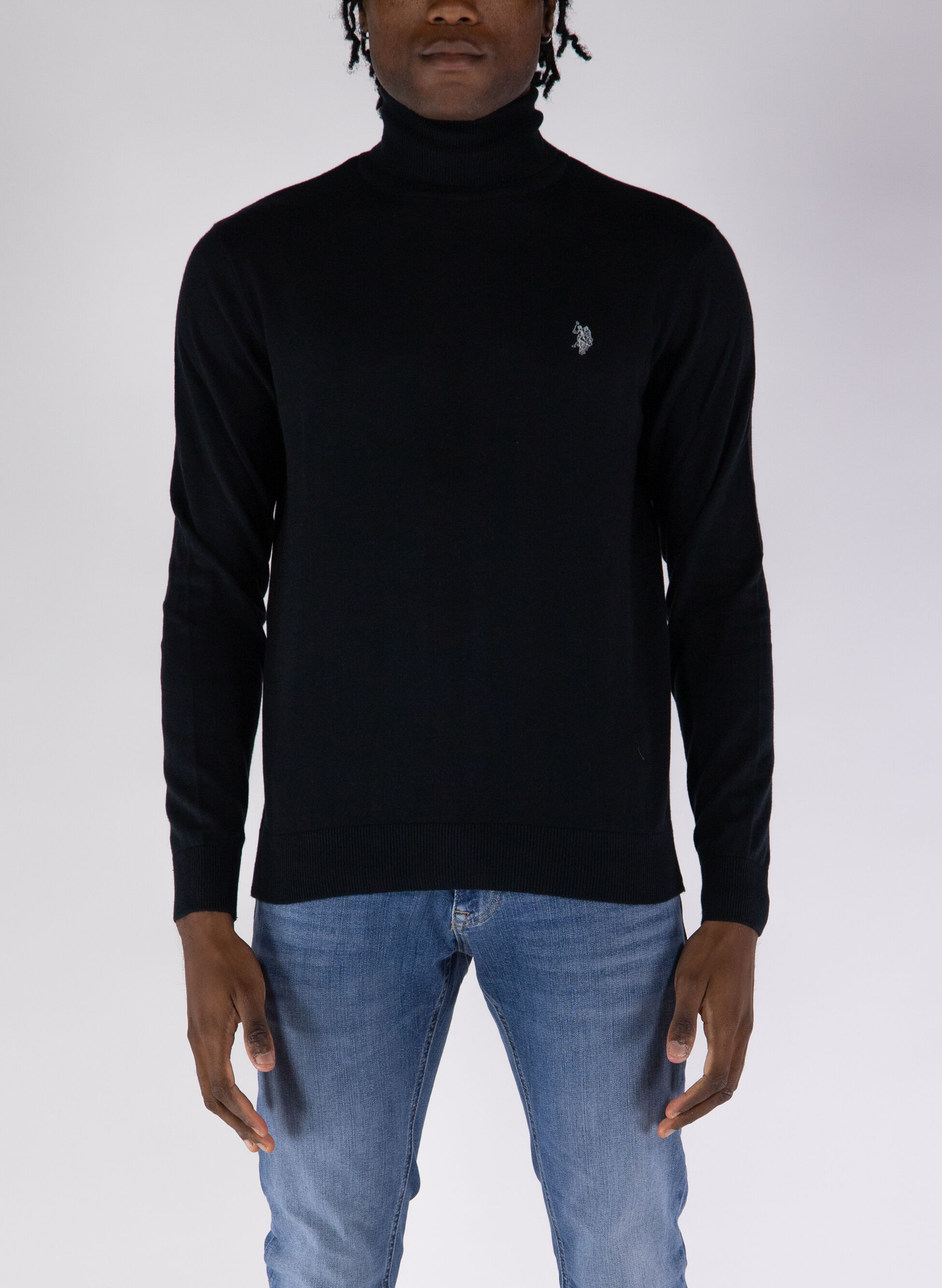 Maglione da uomo a collo alto leggero e morbido al tatto e logo ricamato sul petto.