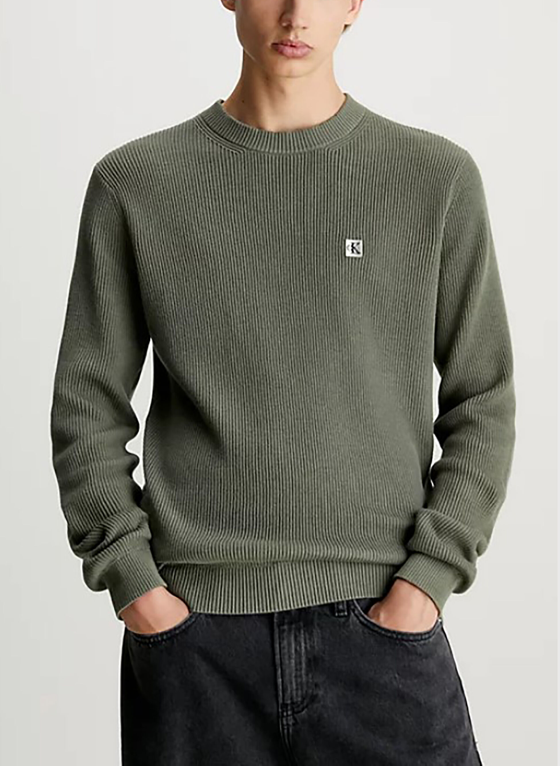 maglione giro badge micro logo