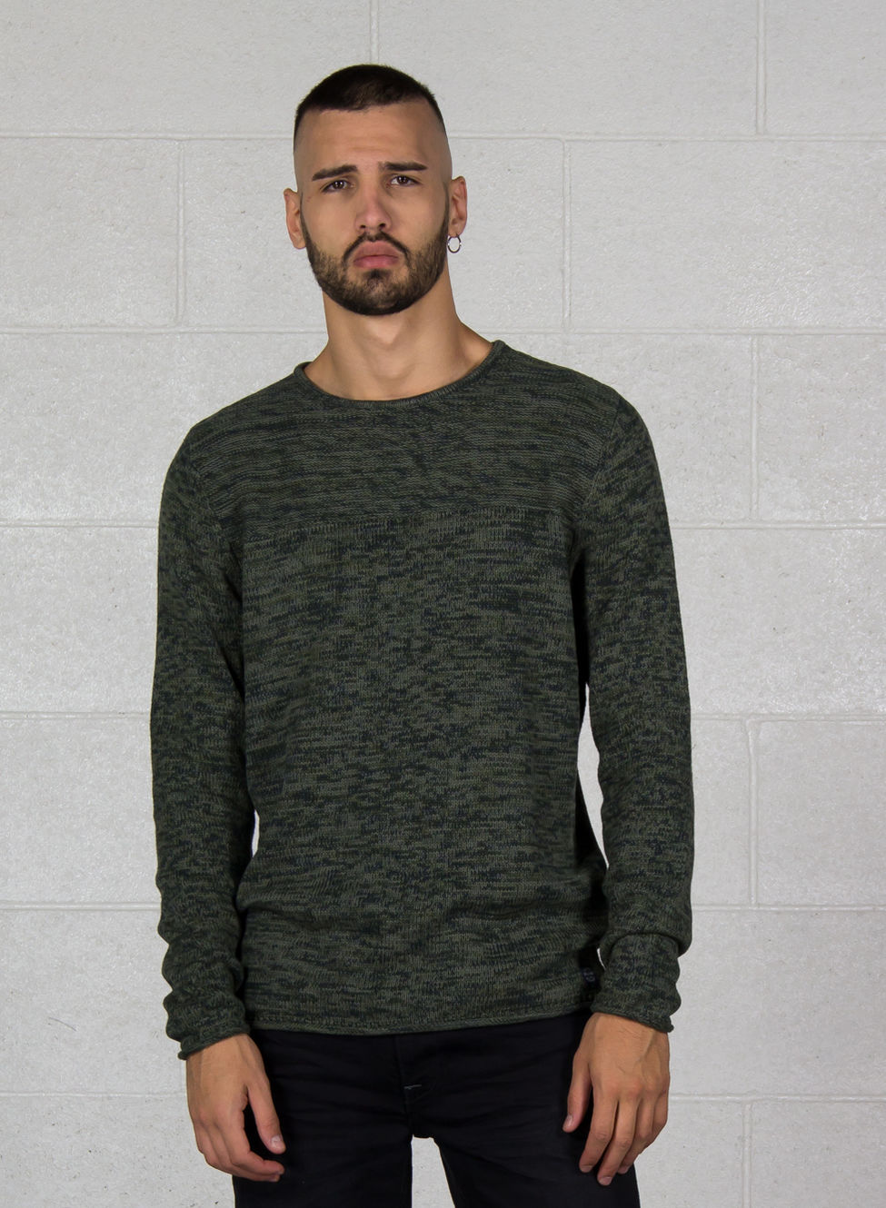 Maglione da uomo con girocollo con effetto melange.