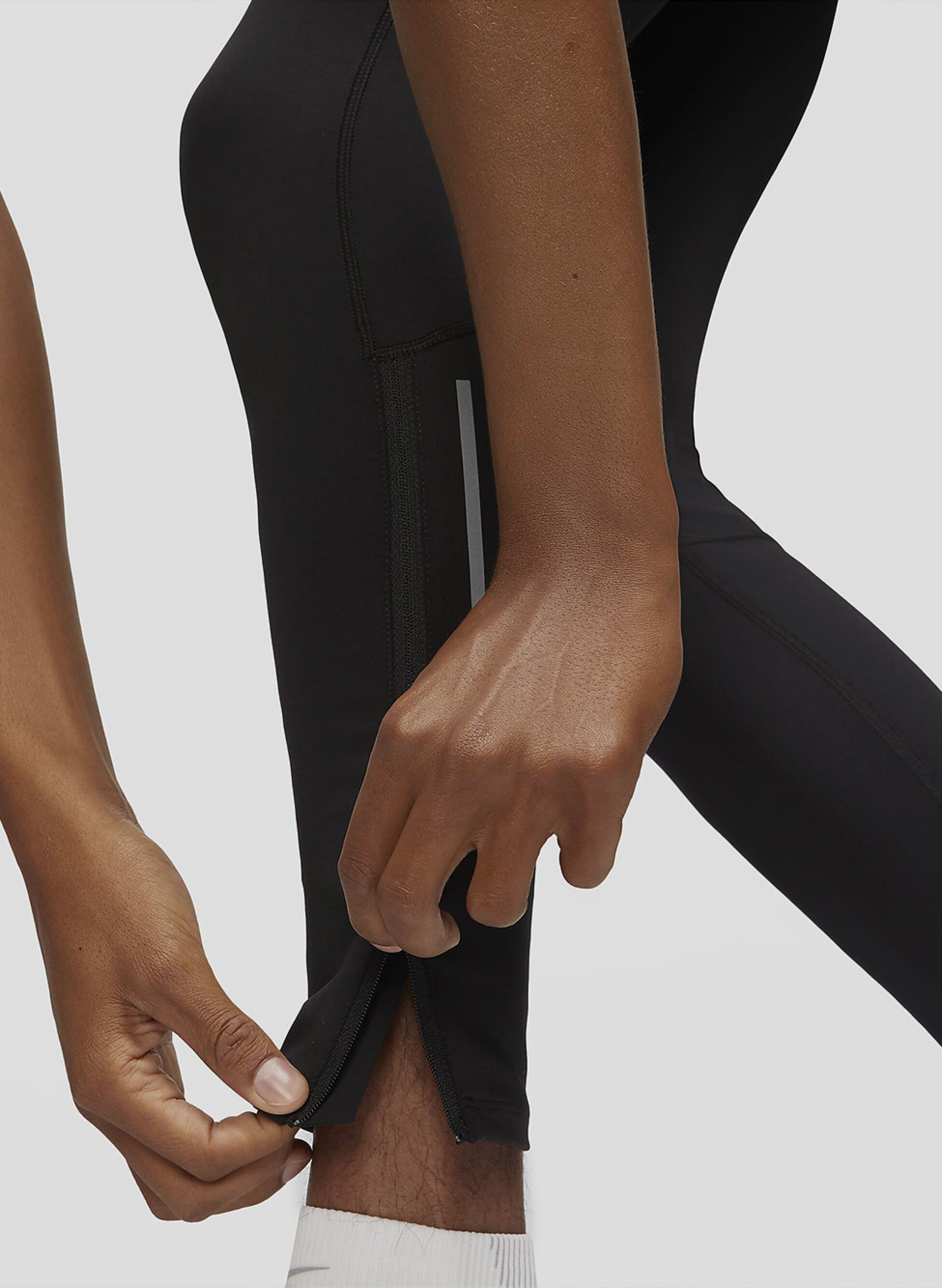 La cerniera sul fondo della caviglia per indossare o togliere il capo senza rimuovere le scarpe.