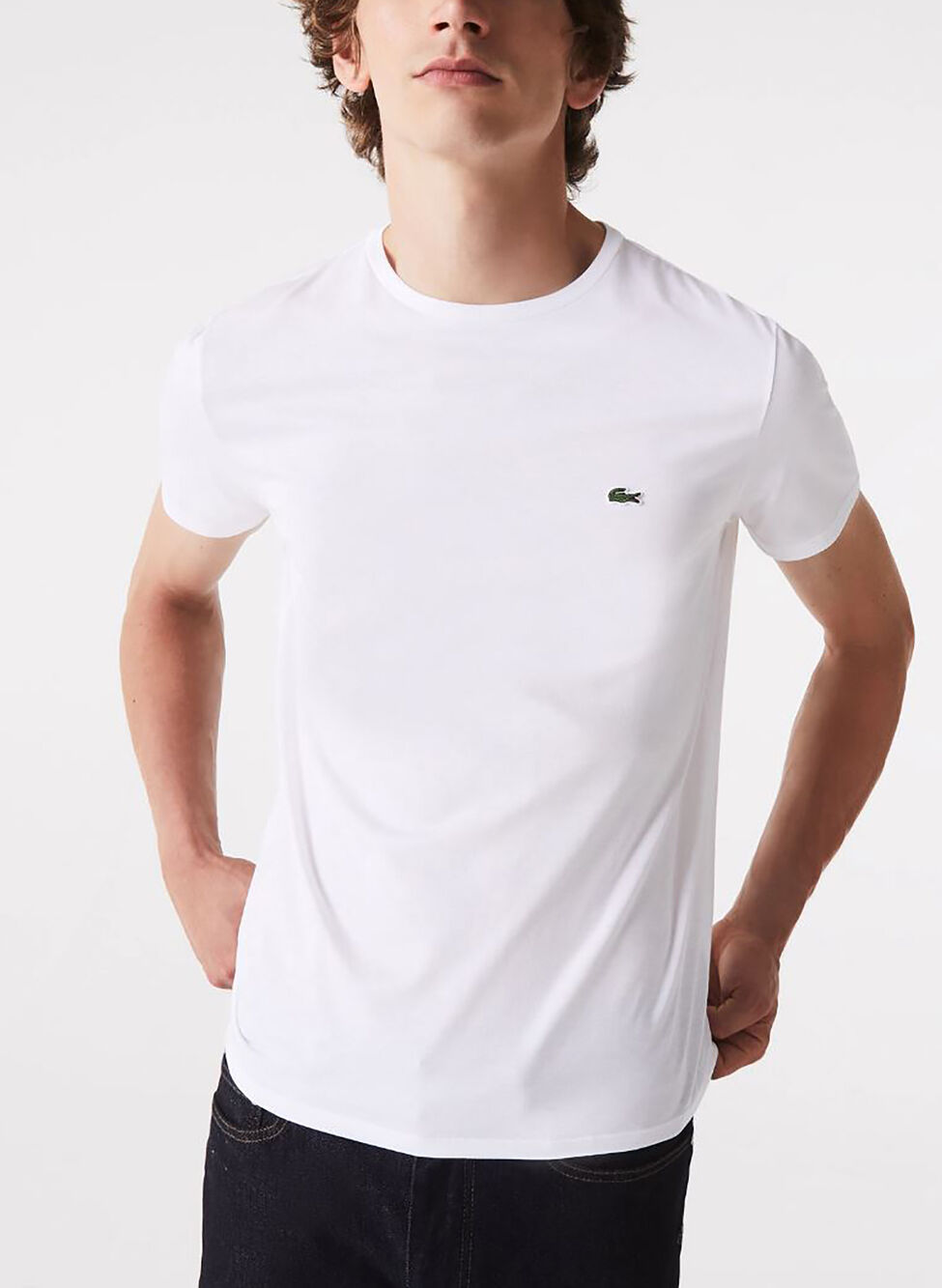T-shirt Lacoste da uomo realizzata in morbido jersey di cotone a tinta unita con taglio regolare e maniche corte.