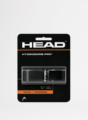 HYDROSORB PRO, il grip sostitutivo della gamma HYDROSORB è più sottile per garantire una sensibilità perfetta e più perforato per un elevato assorbimento del sudore. Dotato inoltre del sistema a doppio canale, basato sull'uso di due materiali, assicura massimo attutimento e flusso d'aria. Questo grip sostitutivo ha una superficie elastomerica ad alta presa per avere un'impugnatura perfetta. Disponibile in nero o in bianco, è molto popolare tra i tennisti del circuito e perfetto per chi desidera grande sensibilità, una solida e confortevole presa della racchetta.