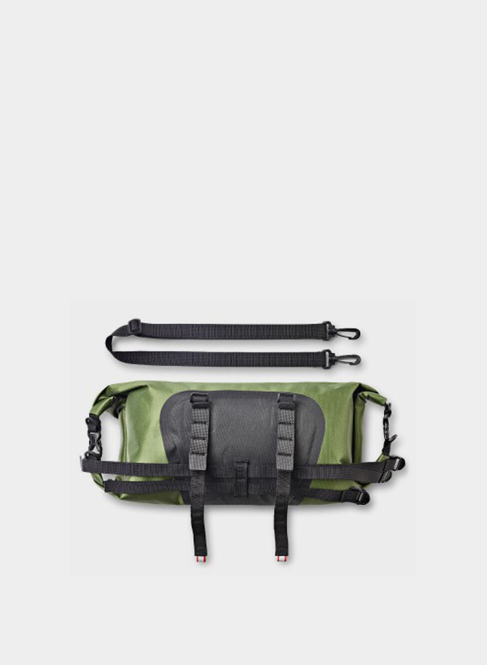 Pratici moschettoni per attaccarla sul manubrio della bicicletta.