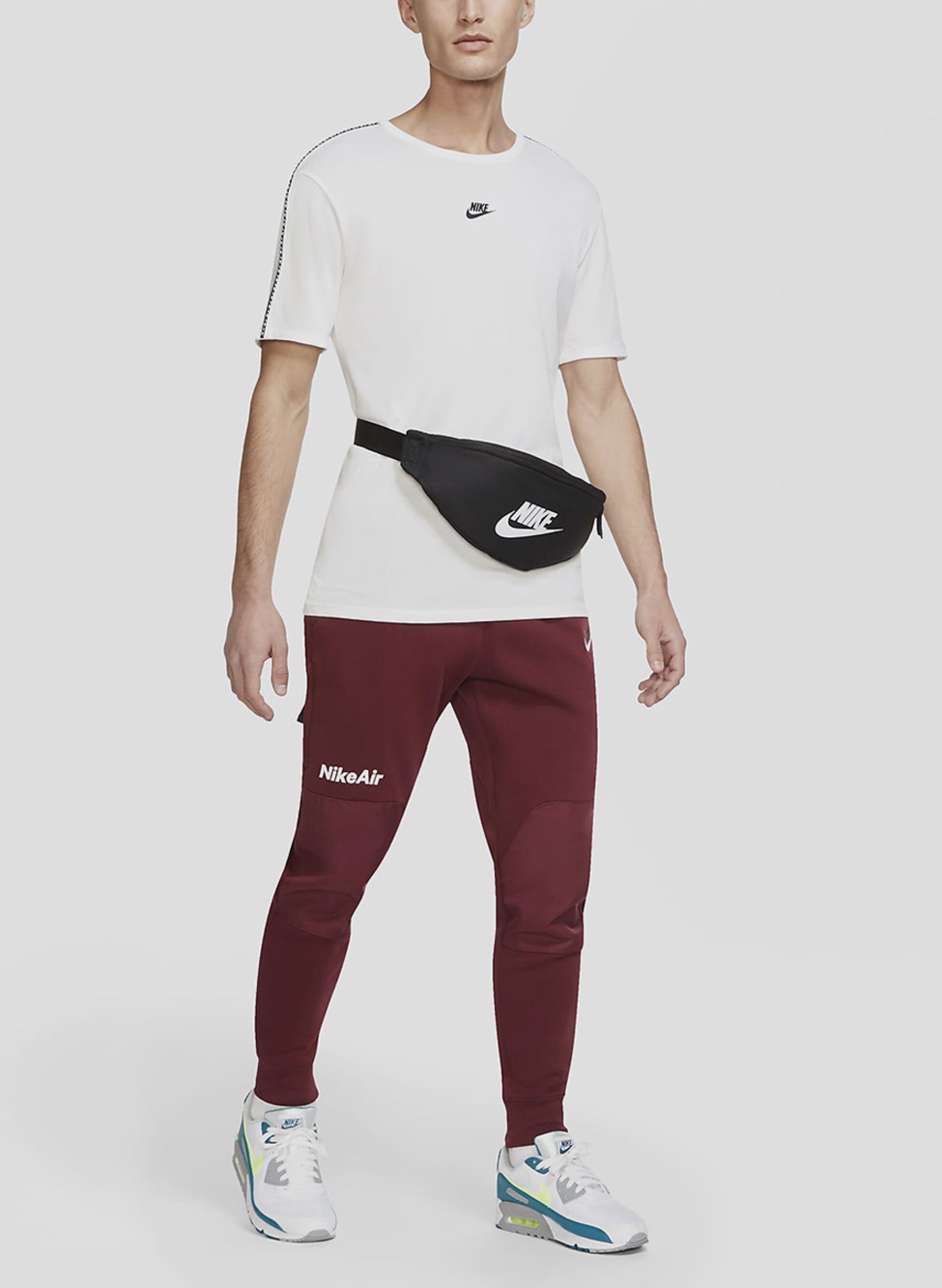 Marsupio Nike ideale per outfit street. Pratico e comodo con la sua ampia cerniera superiore per contenere portafogli, blocknotes e smartphone.