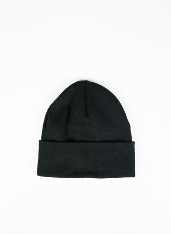 Cappello unisex in maglia con risvolto e logo sul davanti.
