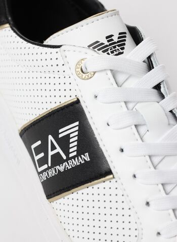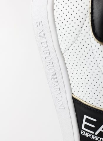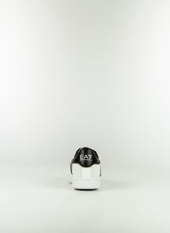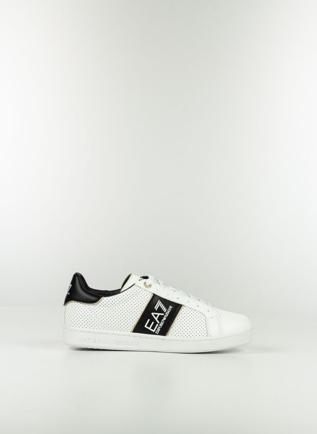 Sneakers EA7 Classic Performance, in pelle dal design semplice e lineare, caratterizzate dalla personalizzazione con logo a contrasto. Il modello si distingue per la tomaia traforata e i profili a contrasto che sottolineano lo spirito versatile e leggero, perfetto per il tempo libero.