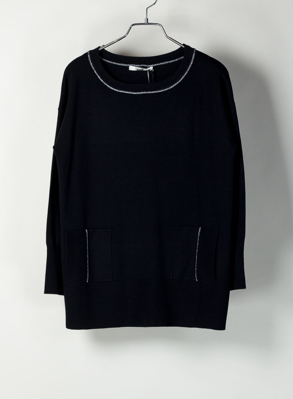 Inserti in lurex sul girocollo e sulle tasche.