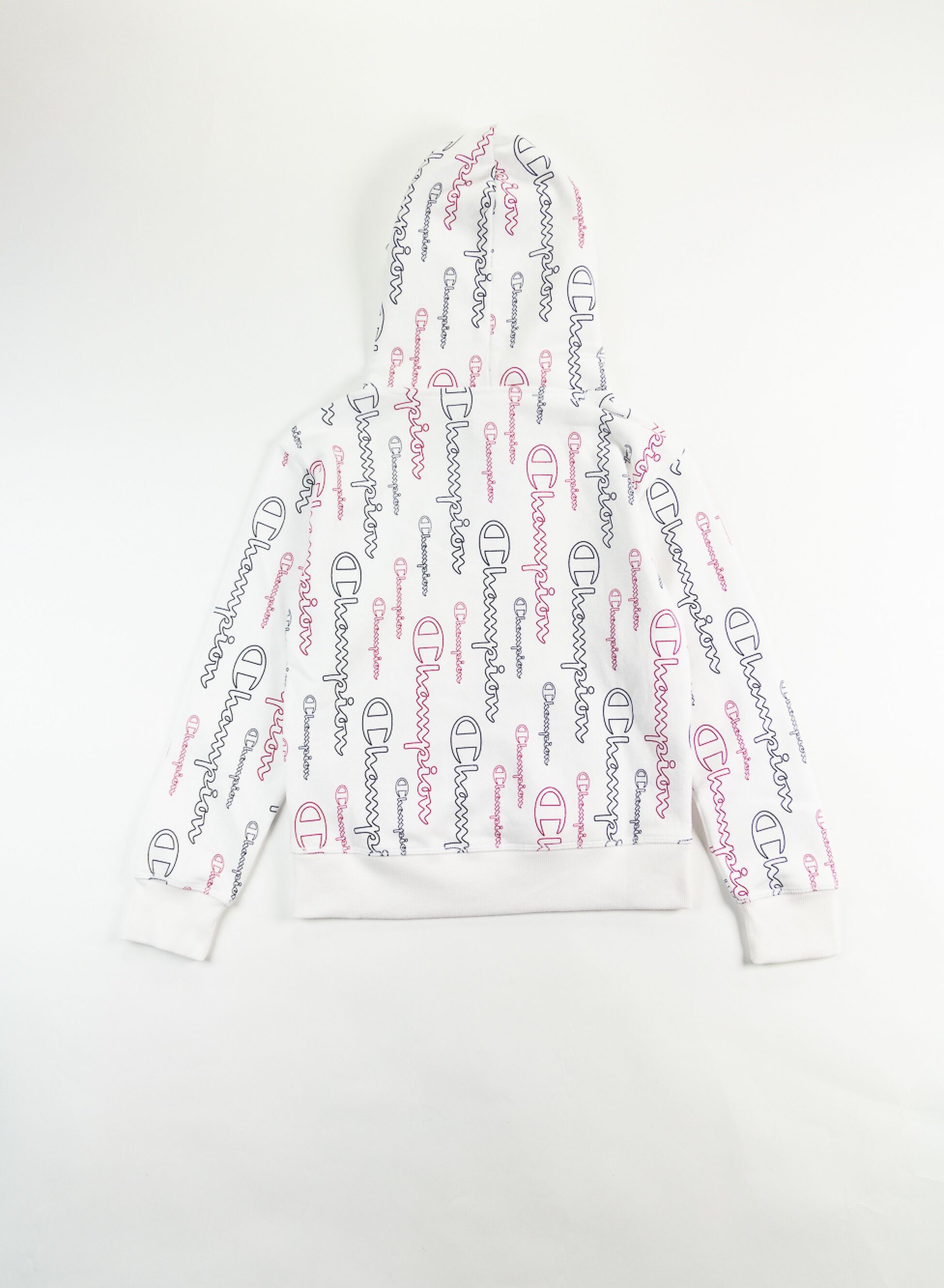 Felpa da ragazza fino a 16 anni di Champion, l'iconico logo spicca stampato all over in verticale, la felpa è caratterizzata dalla comoda tasca a marsupio e il caldo cappuccio felpato. Realizzata in morbido tessuto felpato misto cotone, è perfetta per aggiungere un pizzico di stile agli outfit comodi per le giornate a scuola o di divertimento.