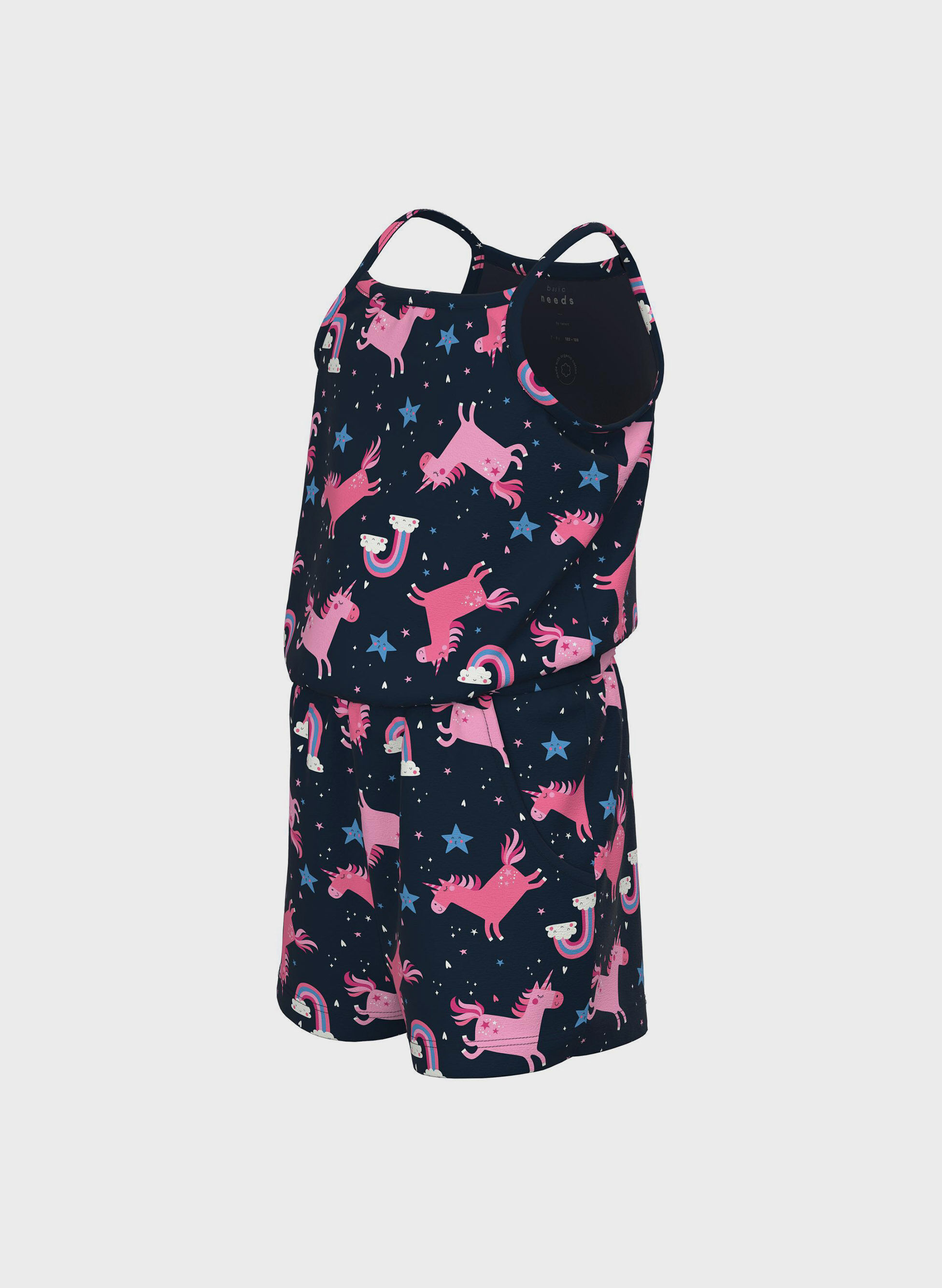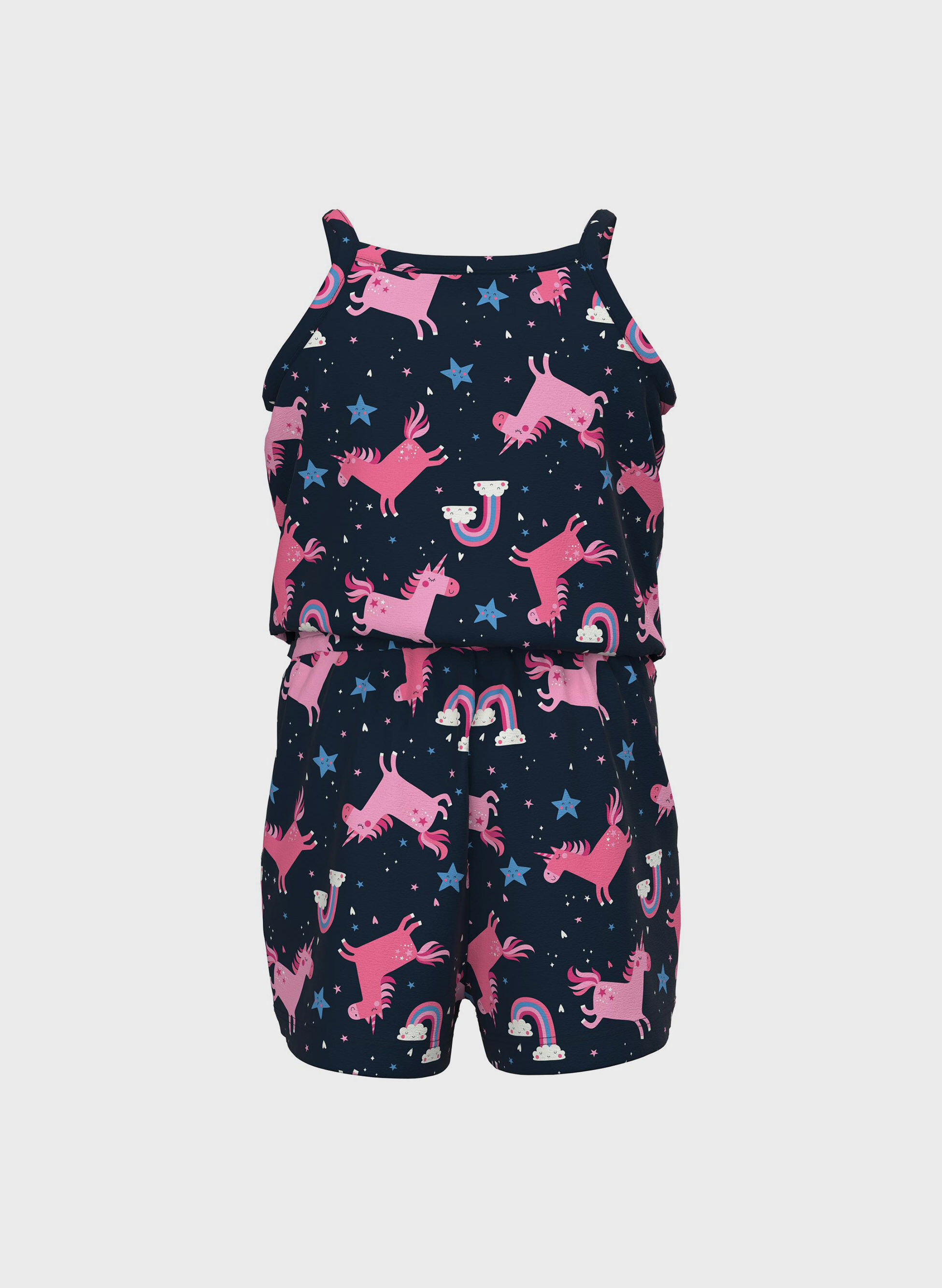 Rinnova il guardaroba del tuo bambino con abiti morbidi e confortevoli che assicurano comodità e stile. Questa tutina intera è caratterizzata da diverse fantasie colorate, spalline sottili ed elastico in vita. Dotata di una pratica apertura sul cavallo con bottoni a pressione.